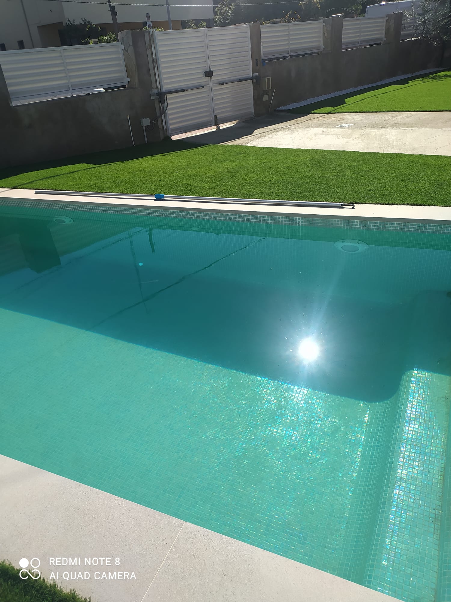 Construcción de piscina en Can Parellada (Terrassa)Gresite de Ezarri modelo coral 25 de la colección iridescent.Coronacion porcelanica de cerámicas Mayor, modelo stromboli light.Impermeabilizado con sistema signapoolFiltro y bomba de Astral pool y clorador salino de BSV