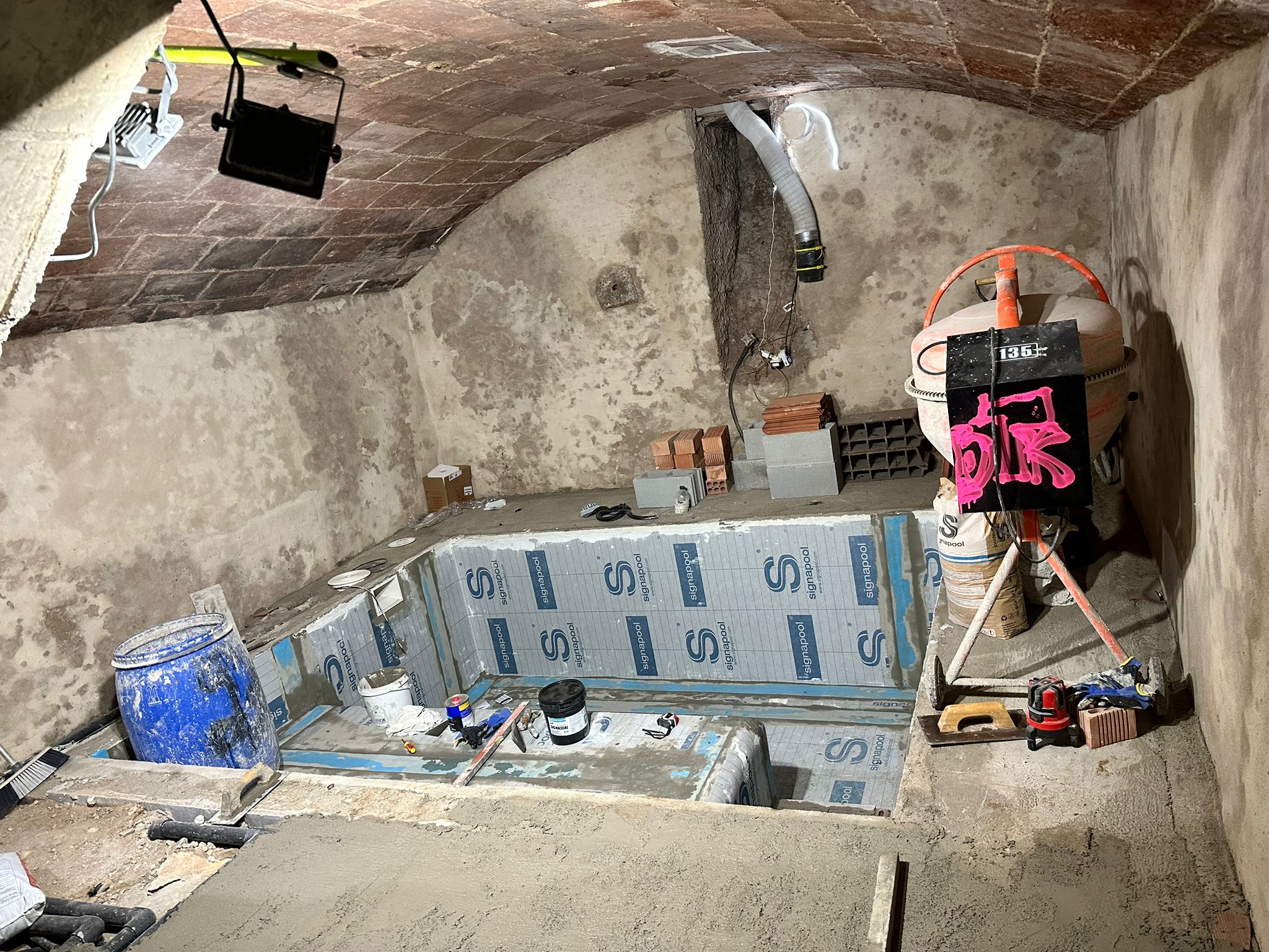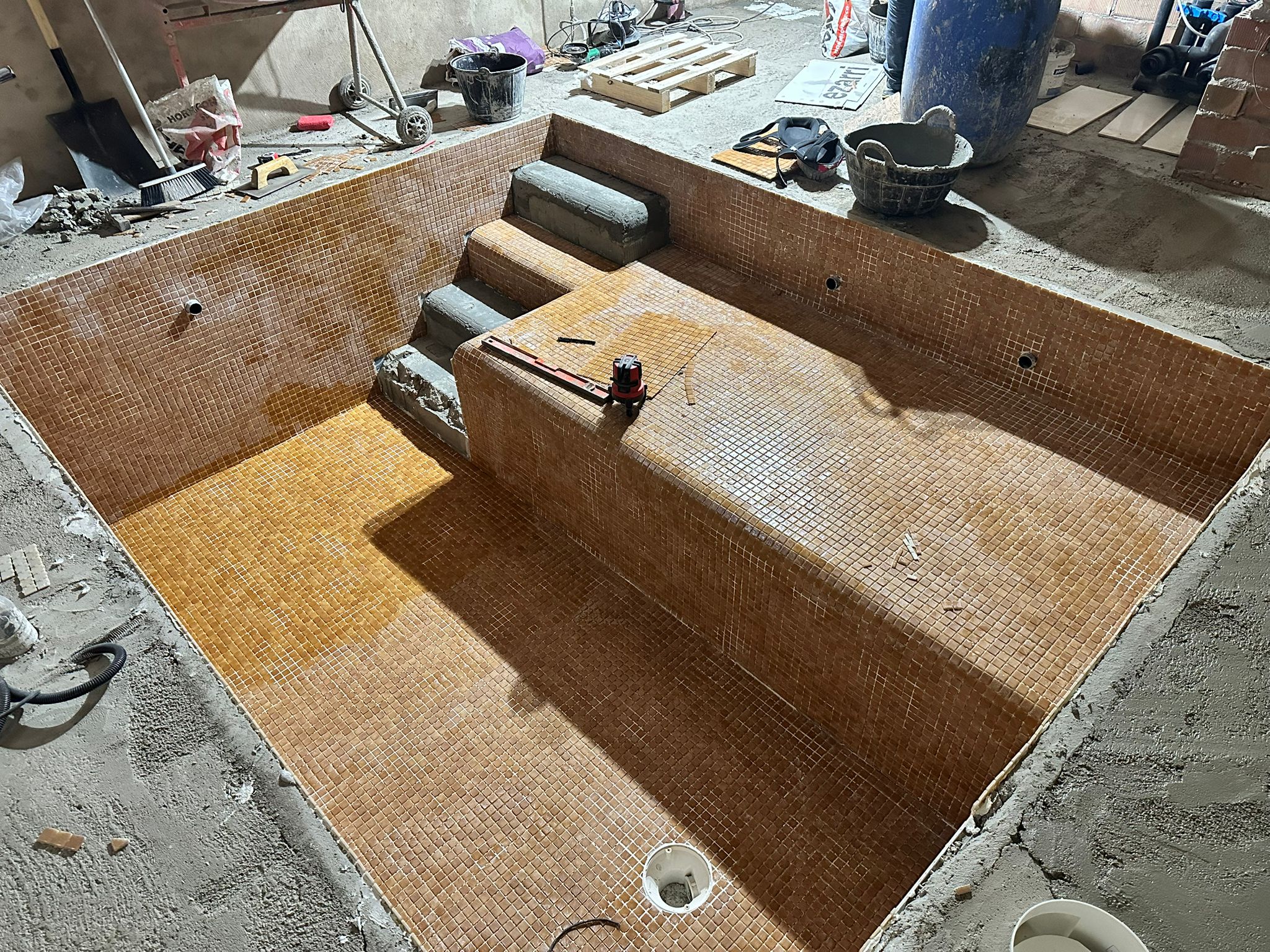 Construcción de piscina en un sótano del centro de esparreguera.La impermeabilización, como siempre de @signapool, gresite de @ezarri_mosaics y porcelanico de @ceramica.mayor